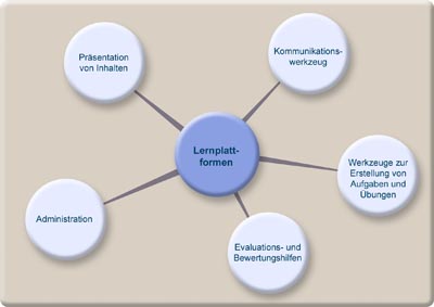 Im Gegensatz zu den herkömmlichen Modellen, die sich mit der Sammlung von Lernskripten oder Hypertext-Kollektionen auf webbasierten Rechnern beschäftigen, zeichnen sich Lernplattformen durch folgende Funktionen aus: